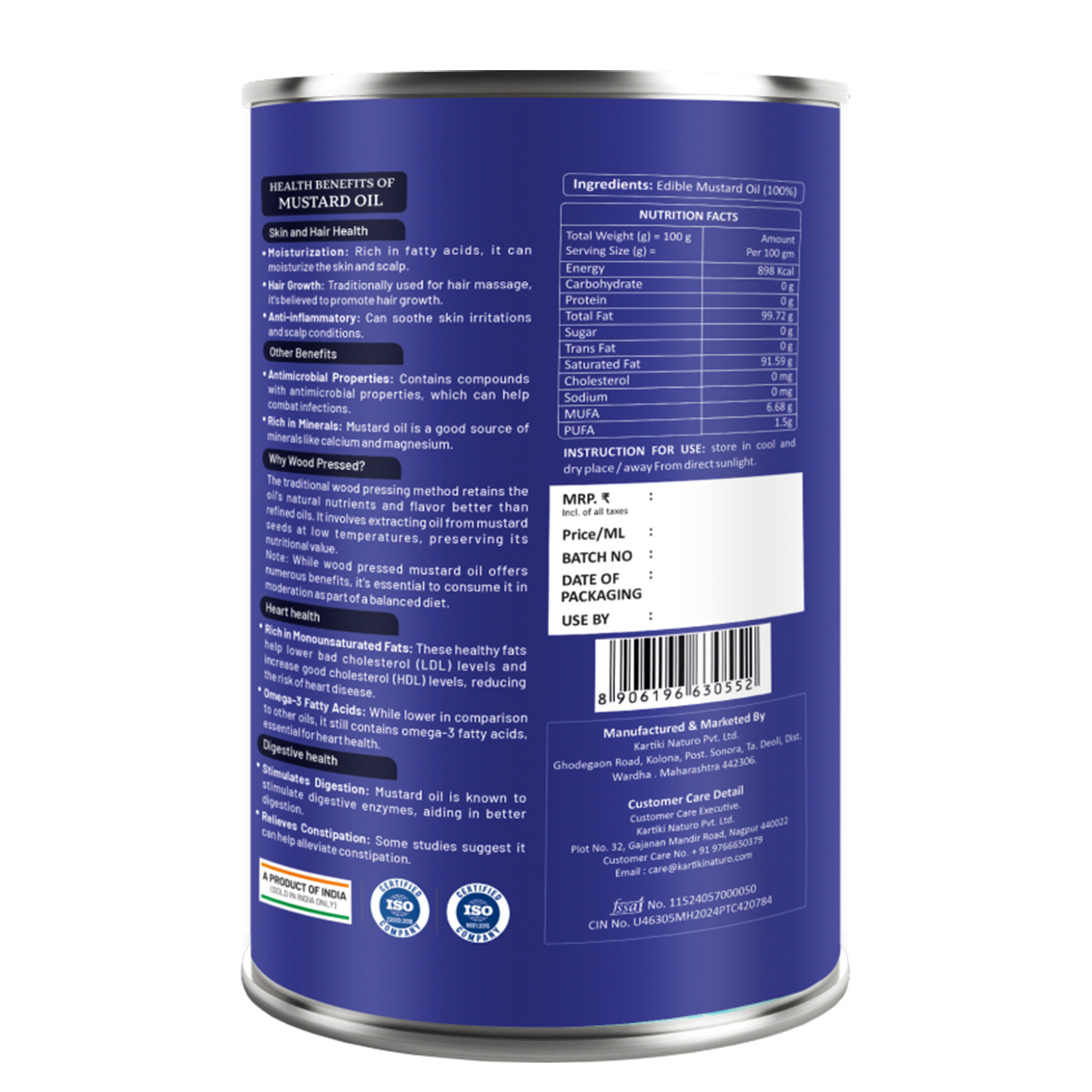 Extraction Method: Traditional Wood-Pressed (Kachi Ghani)